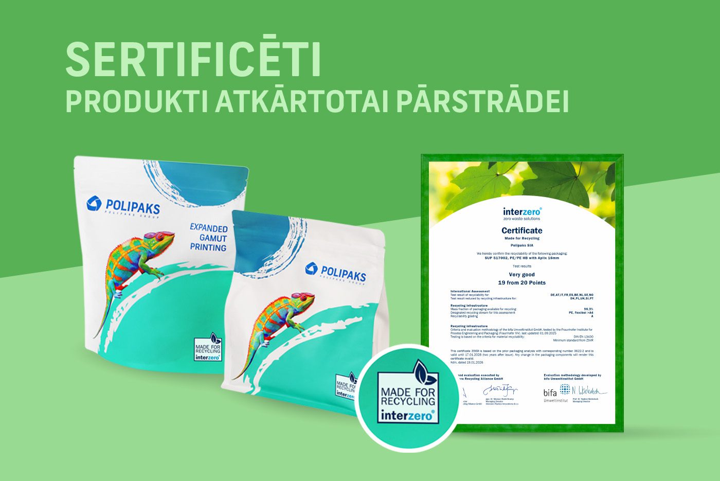 19.03.2026 POLIPAKS iepakojuma risinājumi sertificēti ar Interzero “Made for Recycling” sertifikātiem As recyclability requirements and PPWR (Packaging and