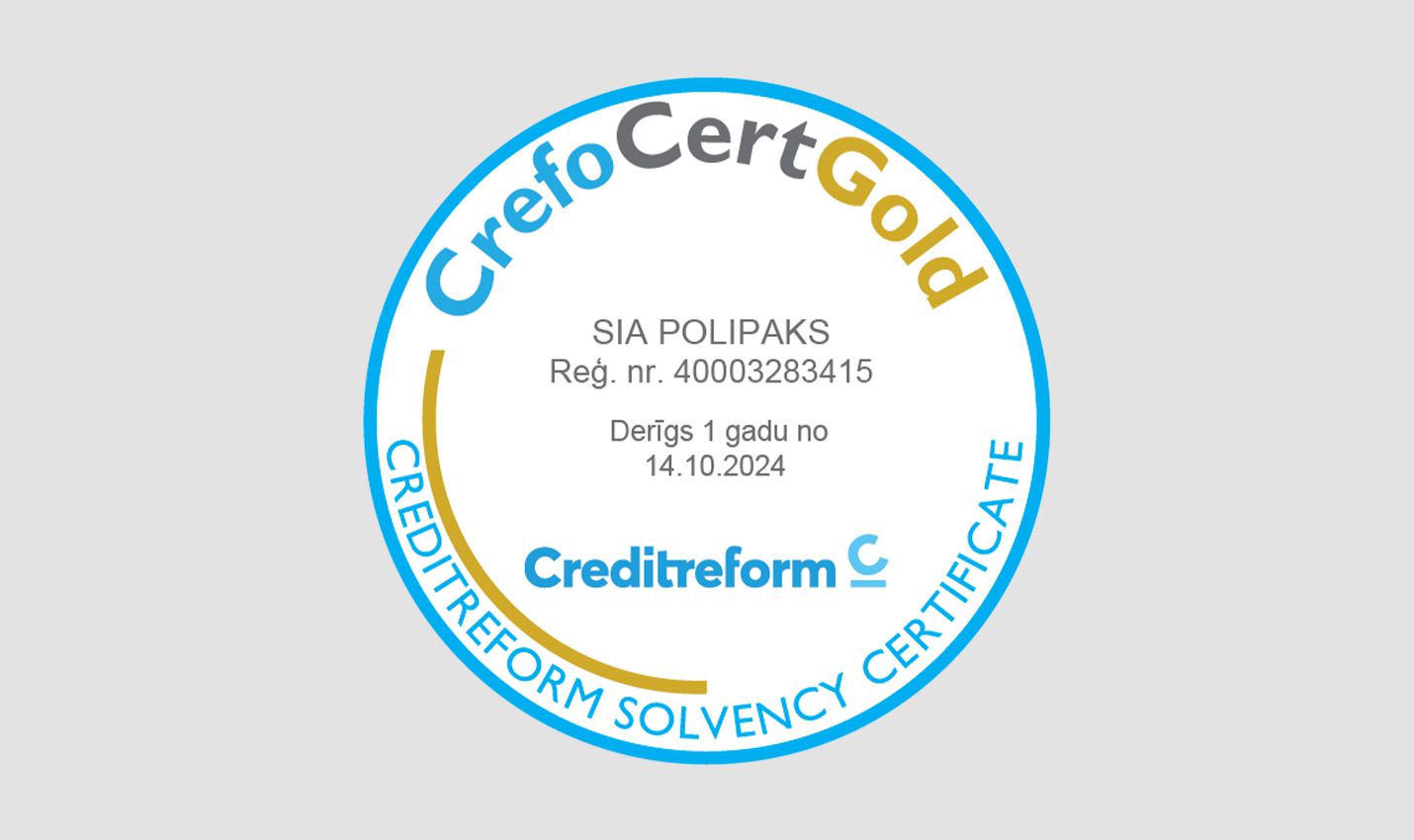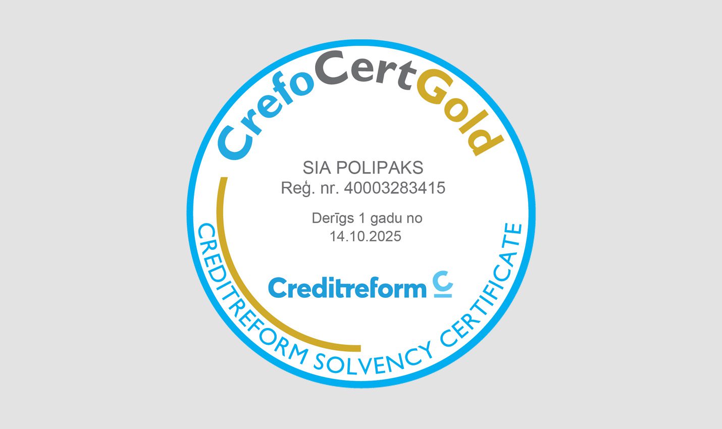 CrefoCert sertifikāts apliecina mūsu uzņēmuma stabilitāti un kvalitāti, tādējādi veicinot mūsu reputāciju un apliecinot mūsu spēju pildīt finansiālās saistības.